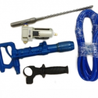 本冲击钻由柄体、压柄、气缸、推杆、机头等组成。